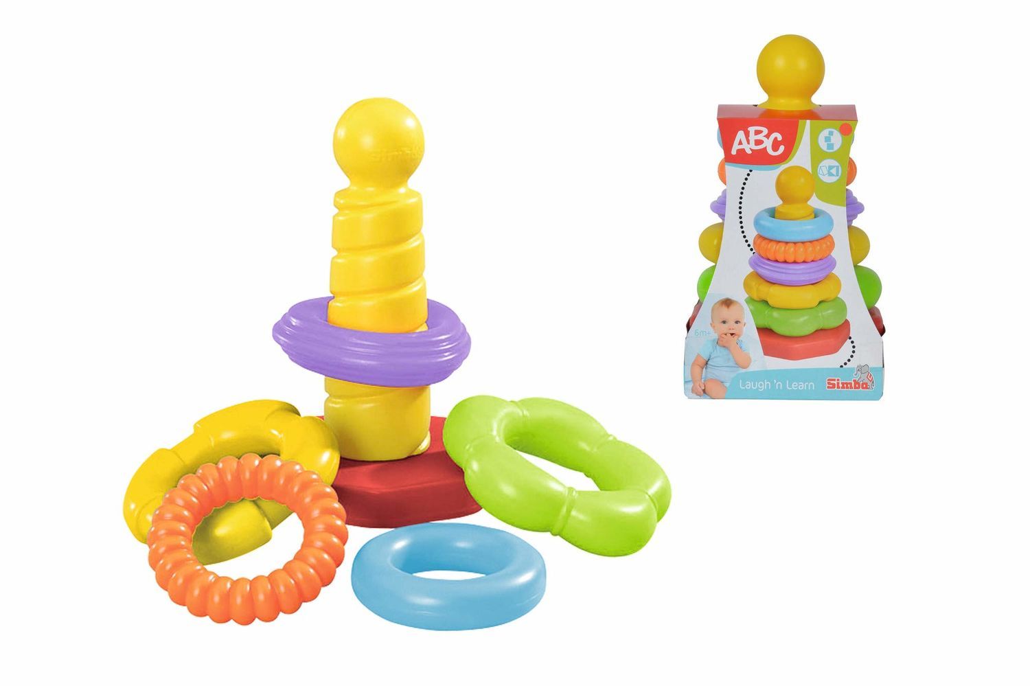 Los primeros objetivos de aprendizaje se consiguen a través del juego, se descubren formas y estructuras y se entrenan patrones de coordinación. ¡Aprende y juega divertido con la pirámide de anillos ABC! La pirámide de anillos se compone de 5 anillos coloridos de diferentes formas y una base curva que se balancea de forma divertida. Colocar los cinco anillos en el orden correcto es muy divertido y promueve de forma lúdica la coordinación de ojos y manos. La pirámide de anillos mide 25 cm de alto.