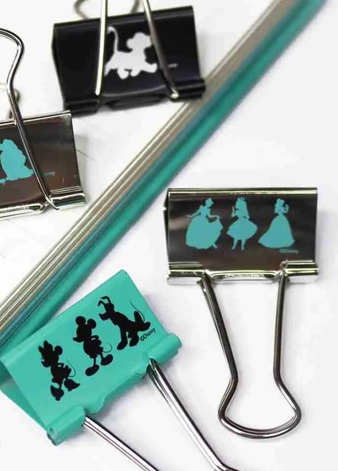 Estos clips, fabricados en metal resistente, tienen un tamaño de 32mm, lo que los hace perfectos para sujetar hojas de papel de cualquier tamaño. Su color celeste principal, combinado con los detalles de Disney, aporta un toque de color y diversión a tu escritorio.