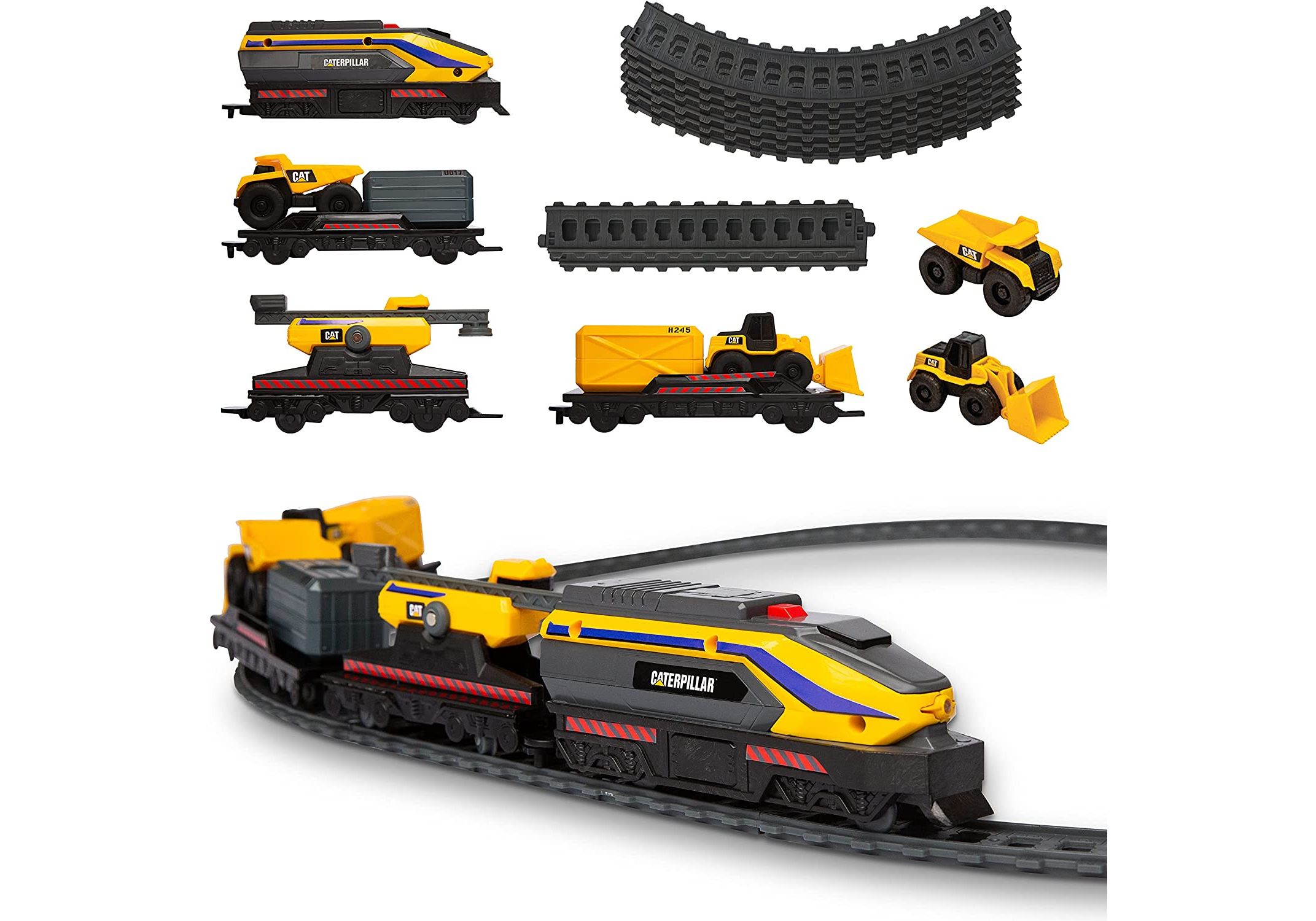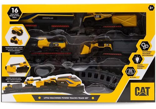 Con el juego de trenes de orugas eléctricas Cat Little Machines, puede transportar fácilmente vehículos y equipos hacia y desde el sitio de construcción. Construya un bucle grande con los 8' de riel de fácil ensamblaje. Comience la acción con solo presionar un botón en el motor del tren motorizado para darle vida a él y a los tres vagones que lo remolcan. ¡Con la grúa magnética en funcionamiento, puede levantar y mover fácilmente los dos contenedores de carga magnéticos como si fueran reales! Descargue los minivehículos Little Machines de empuje de 3” de los vagones de plataforma y póngase a trabajar en el sitio de construcción. Mueva y coloque fácilmente los cangilones articulados y las plataformas de descarga para manejar cualquier tarea. Apropiado para mayores de 3 años. Incluye: 1 motor de tren motorizado 3 vagones de ferrocarril 2 vehículos de máquinas pequeñas 2 contenedores de carga magnéticos 1 grúa magnética de 8 pies de vías Instrucciones