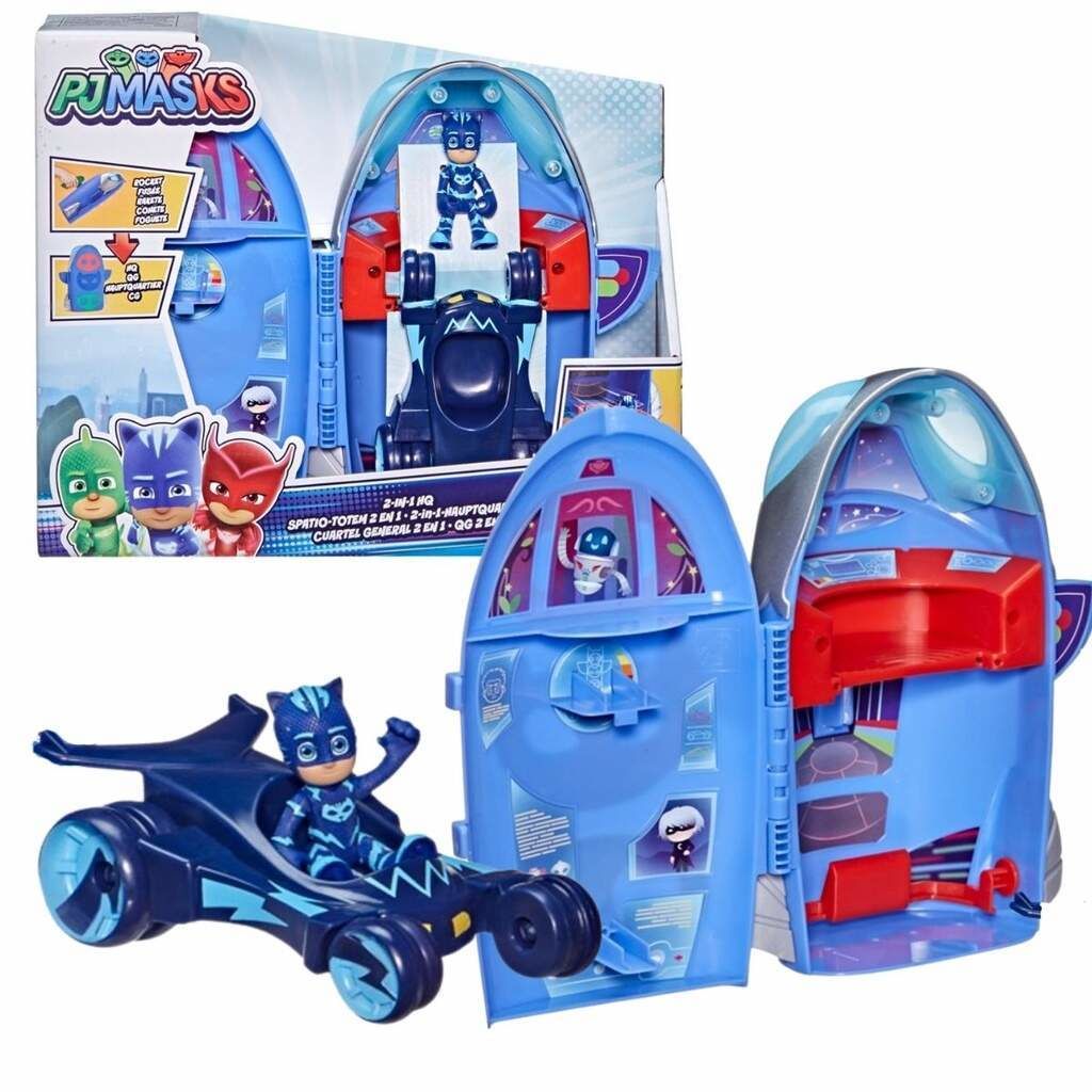 Diversión 2 en 1: el juego convertible PJ Masks 2 en 1 se transforma de un cohete a una sede de PJ Masks de varios niveles completa con consola decorativa de computadora y lanzador de vehículos.