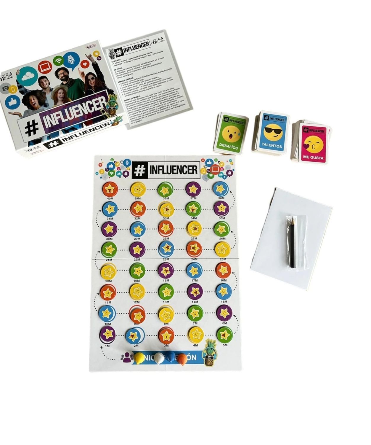 * 189 cartas • 40 fichas • 1 block de hojas • 1 lápiz • Instrucciones