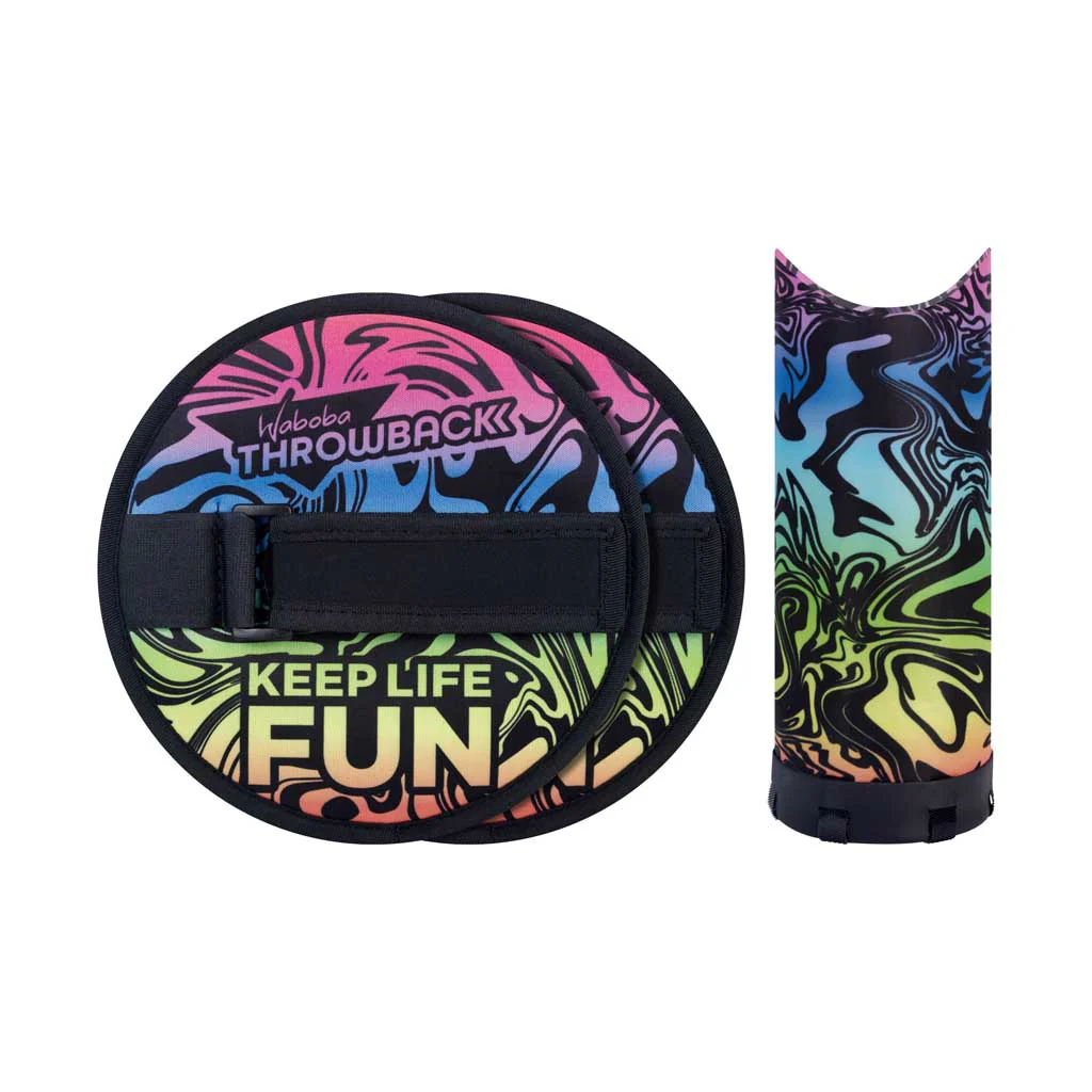 Presentamos la nostalgia de los 90 para la próxima generación. Olvídate de Internet y juega como en los viejos tiempos. Waboba Throwback reinventa el clásico juego de paletas con velcro. En lugar de plástico duro y pelotas de tenis, Throwback presenta el planeador con velcro AIRLYFT de Waboba y paletas suaves. ¡Adelante!