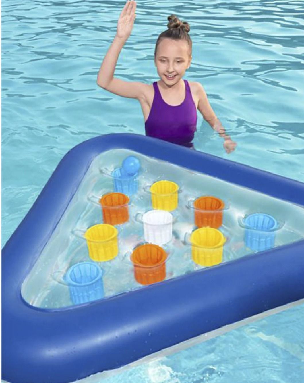 Juego de billar Pong Champion Infable, fabricado por Bestway calidad en cada producto. Mide 105 cm x 97 cm. El juego cuenta con 10 agujeros identificados por color, y cada pelota debe embocar en su color correspondiente.