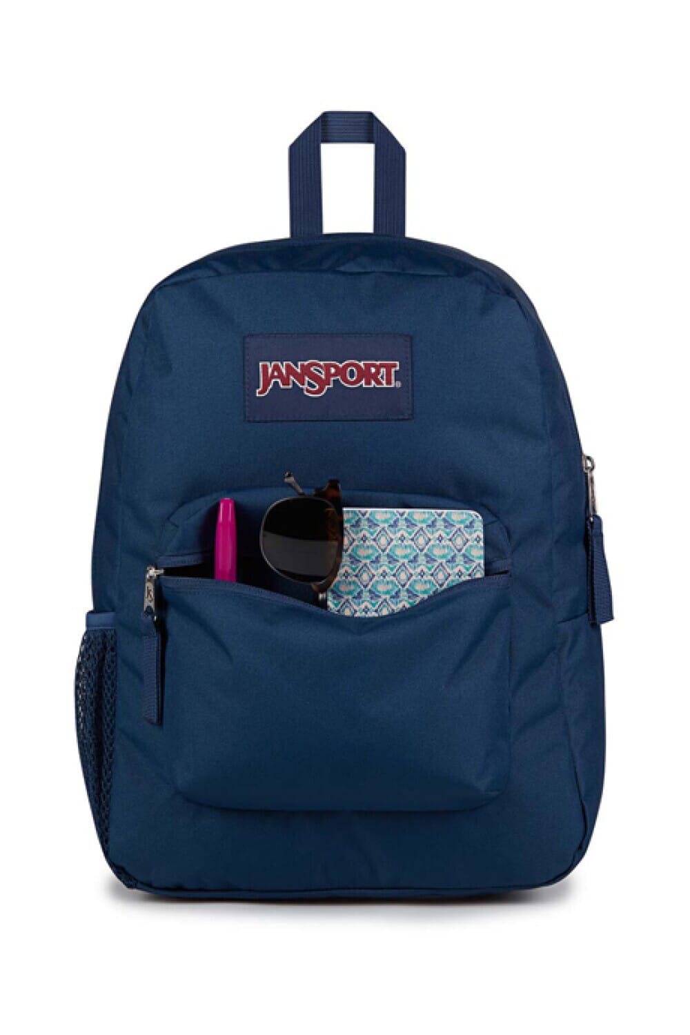 Un gran compartimento principal Bolsillo lateral para botella de agua Bolsillo frontal con cremallera Tirantes de hombro acolchados con corte recto icónico