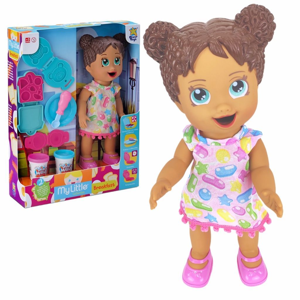 Viene con tortita, sandwichera, tortilla, plato pequeño, cucharita y dos tarritos de plastilina para que prepares tus comidas.