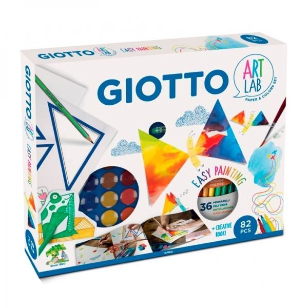 Un set especial para aprender a crear con la nueva línea súper creativa de Giotto: Art Lab Papers & Colors. Gracias al Giotto Album Kids, ceras y lapices de colores, sacapuntas, rascador, libro creativo y plantilla gráfica, no hay límites en la creatividad para poder crear desde un círculo una gran cantidad de formas diferentes: pájaros, niños, planetas y naves espaciales.